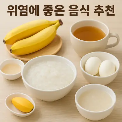 - 위염: 죽, 삶은 채소, 바나나, 부드러운 밥 위주